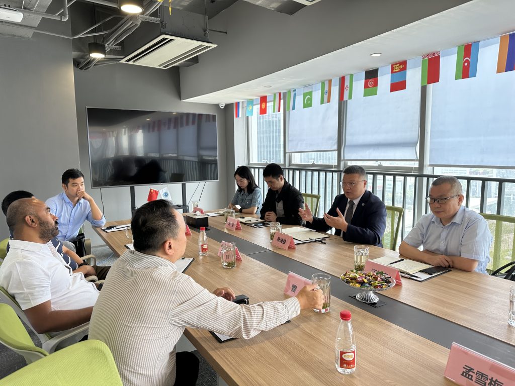 6月6日,重庆迈特涞斯网络科技有限公司(以下简称迈特涞斯)董事长曾伟与迈特涞斯外资股东MULTILINES CORPORATION PTE.LTD董事长Ali hussnain(阿里·侯赛因)一行受邀前往上海合作组织国家多功能经贸平台(以下简称上合经贸平台)参加上合经贸平台张光福副秘书长主持的商讨会议。